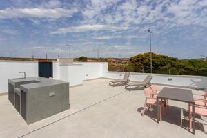 Nieuwbouwwoningen in Sucina: laatste woning volledig ingericht en klaar om te betrekken Uitzonderlijke kans in Sucina Dit is uw kans om de laatste beschikbare woning in dit moderne nieuwbouwproject te bemachtigen, die voorheen als modelwoning werd gebruikt. De woning is sleutelklaar en wordt volledig ingericht opgeleverd met meubilair, apparatuur, binnen- en buitenverlichting, airconditioning, een oplader voor elektrische auto’s en een buitenkeuken met koelkast. Een unieke kant-en-klare kans in een van de meest charmante stadjes van de Costa Calida. Eigentijds ontwerp gericht op licht en comfort Deze halfvrijstaande villa’s vallen op door hun elegante en pure eigentijdse ontwerp, met indelingen die zijn gemaakt om het natuurlijke mediterrane licht te maximaliseren. De belangrijkste leefruimtes hebben een open concept, waarbij de keuken en de woonkamer naadloos in elkaar overvloeien, verbonden door een stijlvol centraal eiland. Deze ruimte loopt direct over in de veranda en het terras bij het zwembad, waardoor een harmonieuze binnen-buitenlevensstijl ontstaat die ideaal is voor zonnige dagen. Wonen op één niveau met privézwembad en solarium De villa heeft 3 slaapkamers en 2 badkamers op één verdieping, plus een handig gastentoilet buiten bij het zwembad. De hoofdslaapkamer is uitzonderlijk licht en heeft een eigen badkamer, een inloopkast en directe toegang tot het hoofdterras. De woning beschikt ook over een indrukwekkend solarium van 82 m2, perfect om te zonnebaden of om een buitenlounge te creëren. De villa is gebouwd op een perceel van 211 m2 en heeft een eigen parkeerplaats op het perceel. Toplocatie dicht bij alle voorzieningen De villa ligt op korte loopafstand van het centrum van Sucina en biedt directe toegang tot dagelijkse voorzieningen zoals winkels, restaurants en supermarkten. Sucina is een traditioneel Spaans stadje dat de laatste jaren aan populariteit heeft gewonnen vanwege de ontspannen levensstijl, de authentieke sfeer en de nabijheid van de kust. De prachtige stranden van de Costa Calida en de Mar Menor liggen op slechts een paar minuten afstand. Afstanden tot belangrijke bezienswaardigheden Luchthaven Murcia 25 km Luchthaven Alicante 75 km Stranden van de Mar Menor 15 km Dichtstbijzijnde golfbaan 4 km Haven van San Pedro del Pinatar 20 km Geniet van een hoogwaardige mediterrane levensstijl Deze villa’s zijn gebouwd met uitstekende materialen en ontworpen voor comfort. Ze bieden een uitzonderlijke kans om het hele jaar door te genieten van open ruimtes, natuurlijk licht en zuivere lucht. Neem vandaag nog contact met ons op om een bezichtiging te regelen en deze exclusieve, instapklare woning in Sucina te bemachtigen.