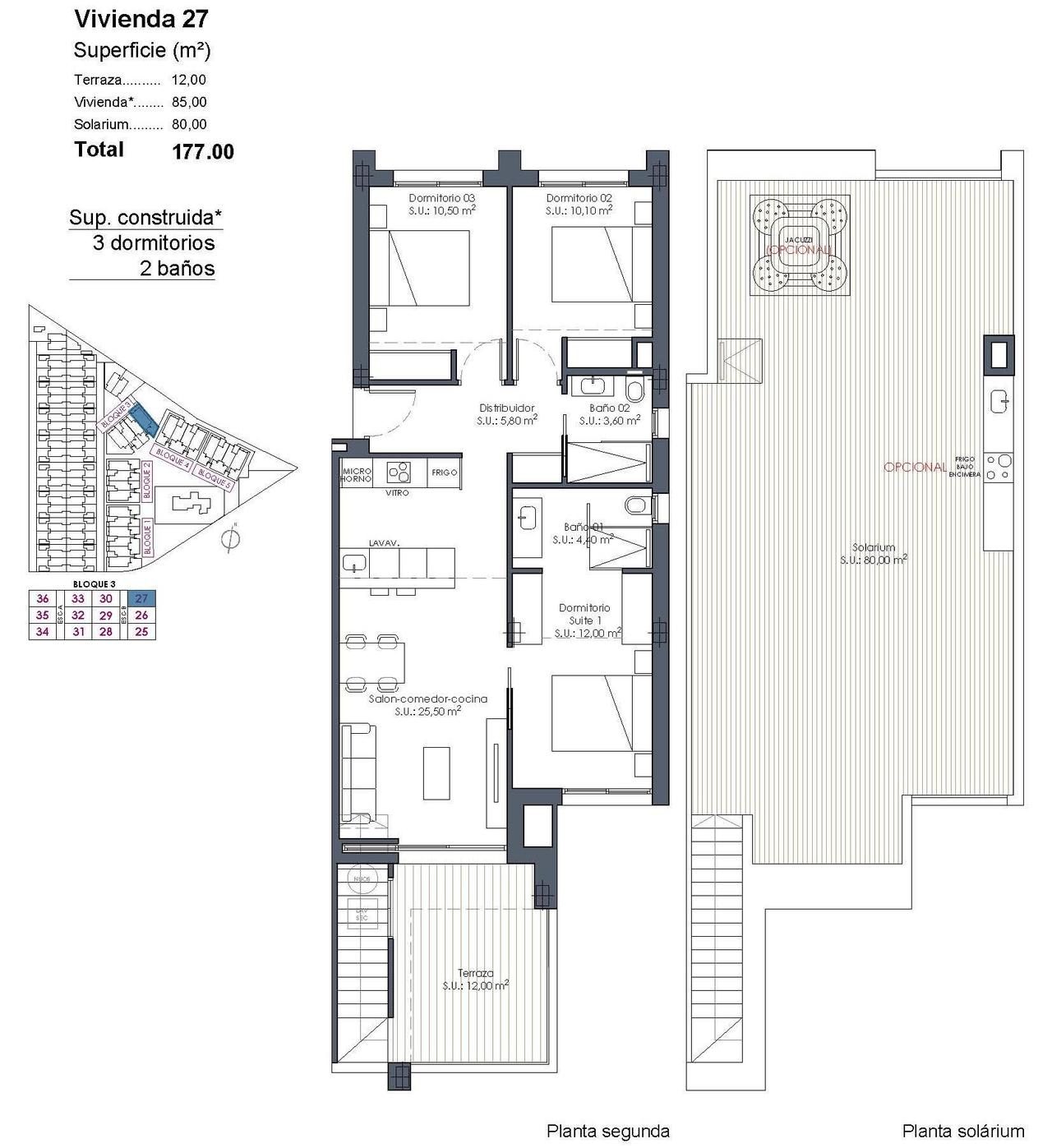Nieuwbouw resortappartementen bij La Serena Golf-Los Alcazares vlakbij het strand Modern wonen aan de golfbaan aan de Costa Calida Ontdek dit exclusieve nieuwbouwresort bij La Serena Golf in Los Alcazares. Dit moderne project bestaat uit 66 stijlvolle appartementen met 2 of 3 slaapkamers en 2 badkamers, waarvan één en suite, ontworpen om comfort, elegantie en een uitzonderlijke mediterrane levensstijl te bieden op slechts 300 meter van de Mar Menor. Los Alcazares is een charmant kustplaatsje dat bekend staat om zijn ontspannen sfeer, zandstranden en lange boulevard. Met meer dan 300 dagen zon per jaar biedt de omgeving een perfecte omgeving voor buitenactiviteiten, watersporten en golf. Het stadje biedt ook een ruime keuze aan restaurants, winkels, jachthavens en sportfaciliteiten, waardoor het een zeer gewilde bestemming is voor zowel permanente woningen als vakantiehuizen. Appartementen met terrassen, tuinen en privésolaria Het wooncomplex biedt verschillende soorten woningen die passen bij verschillende levensstijlen. Kopers kunnen kiezen tussen appartementen op de begane grond met privétuinen, woningen op de middelste verdieping met ruime terrassen of penthouses met terrassen en grote solaria op het dak. De solariums zijn voorzien van een buitendouche en bieden de mogelijkheid om een zomerkeuken en een privéjacuzzi toe te voegen, waardoor een ideale ruimte ontstaat om te ontspannen en te entertainen terwijl u geniet van het open uitzicht op de golfbaan en het omringende landschap. Elke woning is ontworpen met een licht interieur en open leefruimtes die naadloos aansluiten op de buitenruimtes. Resortachtige voorzieningen en uitzonderlijke gemeenschappelijke ruimtes Een van de meest onderscheidende kenmerken van dit project is het resortachtige concept. Bewoners kunnen genieten van een spectaculair lagunezwembad van ongeveer 190 m2 met strandtoegang en ontspanningsruimtes met Balinese bedden. Extra gemeenschappelijke voorzieningen zijn onder meer aangelegde tuinen, een spa, een fitnessruimte en een sauna in de kelder. Het complex biedt ook een kinderspeelplaats, twee petanquebanen en gemeenschappelijke toiletten bij het zwembad, waardoor een gastvrije omgeving voor bewoners en gasten wordt gecreëerd. Hoogwaardige afwerking en moderne voorzieningen De appartementen zijn gebouwd met moderne materialen en hoogwaardige specificaties, ontworpen voor comfort en stijl. Volledig uitgeruste keuken met witglanzende apparatuur Badkamers met wastafels, doucheschermen en verlichte spiegels Gemotoriseerde rolluiken Basisverlichtingspakket Volledig geïnstalleerde airconditioning Ondergrondse parkeerplaats voor elke woning Ondergrondse fietsenstalling en optionele opslagruimtes Toplocatie dicht bij het strand en de golfbaan Mar Menor-strand 0,3 km La Serena Golf naast het project Centrum van Los Alcazares 2 km Cartagena 22 km Murcia 40 km Internationale luchthaven van Murcia 30 km Luchthaven Alicante Elche 90 km Het rustige en ondiepe water van de Mar Menor is het hele jaar door ideaal om te zwemmen, zeilen en paddleboarden. Verzeker uzelf van een woning in La Serena Golf Resort Deze moderne appartementen combineren wonen aan het strand, uitzicht op de golfbaan vanuit de meeste woningen en resortachtige voorzieningen in een van de meest aantrekkelijke gebieden van de Costa Calida. Neem vandaag nog contact met ons op voor meer informatie of om een bezichtiging te regelen en verzeker uzelf van uw nieuwe woning in La Serena Golf-Los Alcazares.