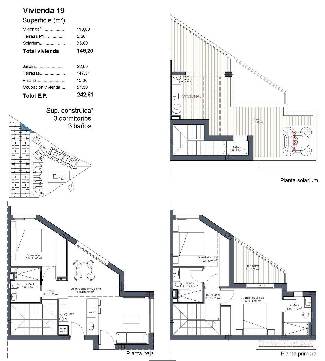 Nieuwbouwwoningen met privézwembad bij Serena Golf-Los Alcazares Boutique collectie van moderne woningen vlakbij de zee Ontdek een exclusief boutique project van 37 moderne vier- en twee-onder-een-kapwoningen gelegen bij La Serena Golf in Los Alcazares aan de prachtige Costa Calida. Deze moderne woningen zijn ontworpen voor kopers die op zoek zijn naar privacy, zon en een buitenleven op slechts 300 meter van het warme water van de Mar Menor. Los Alcazares is een charmant kustplaatsje dat bekend staat om zijn lange boulevard, zandstranden en ontspannen mediterrane sfeer. Het gebied geniet van meer dan 300 dagen zon per jaar en biedt uitstekende restaurants, winkels, jachthavens en sportfaciliteiten. De ligging tussen de zee en de golfbaan maakt het tot een van de meest gewilde bestemmingen in de regio voor zowel permanente woningen als vakantiehuizen. Moderne villa’s met privézwembad en buitenleven Elke woning beschikt over een eigen perceel met een privézwembad, waardoor het hele jaar door kan worden genoten van het mediterrane klimaat. De woningen hebben 3 slaapkamers en 2 of 3 badkamers plus gastentoiletten, waardoor ze comfortabele en functionele leefruimtes bieden die ideaal zijn voor gezinnen of gasten. De villa’s zijn ontworpen om het buitenleven te benadrukken. Naast het zwembad is er een barbecueplaats en een gastentoilet buiten, perfect voor het ontvangen van vrienden en familie. Het solarium op het dak biedt extra ruimte om te ontspannen in de zon en is voorzien van een zonnedouche met voorinstallatie voor een jacuzzi en een zomerkeuken. Parkeren is inbegrepen, zowel op het privéterrein als in een toegewezen ondergrondse parkeerplaats. Hoogwaardige afwerking en moderne voorzieningen De woningen zijn gebouwd met moderne materialen en hoogwaardige specificaties, ontworpen voor comfort en stijl. Volledig uitgeruste keuken met apparatuur in witte glazen afwerking Badkamers met verlichte spiegels, doucheschermen en wastafels Gemotoriseerde rolluiken Basisverlichtingspakket Volledig geïnstalleerde airconditioning Deze voorzieningen zorgen voor een comfortabele woonervaring, of de woning nu als hoofdverblijfplaats of als vakantiehuis wordt gebruikt. Resortachtige voorzieningen en uitstekende locatie Eigenaren hebben ook toegang tot gedeelde resortachtige faciliteiten met een naburig project. Deze voorzieningen omvatten aangelegde tuinen, een gemeenschappelijk zwembad in lagunestijl, een spa, een fitnessruimte en een sauna. De locatie biedt gemakkelijke toegang tot stranden, golfbanen en nabijgelegen steden. Mar Menor-strand 0,3 km La Serena Golf naast het project Centrum van Los Alcazares 2 km Cartagena 22 km Murcia 40 km Internationale luchthaven van Murcia 30 km Luchthaven Alicante Elche 90 km Het ondiepe water van de Mar Menor is het hele jaar door perfect om te zwemmen, zeilen, paddleboarden en andere watersporten te beoefenen. Verzeker uzelf van een mediterrane levensstijl in Los Alcazares Deze nieuwbouvvilla’s bieden de perfecte combinatie van strand, golf en modern comfort aan de Costa Calida. Neem vandaag nog contact met ons op voor meer informatie of om een bezichtiging te regelen en verzeker uzelf van uw nieuwe woning bij Serena Golf in Los Alcazares.